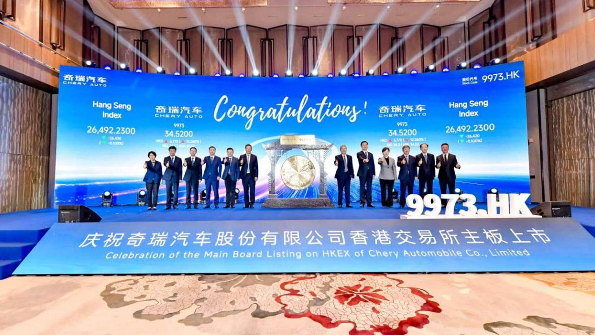 On the morning of September 25, Chery Automobile Co., Ltd was officially listed on the main board of the Hong Kong Stock Exchange.